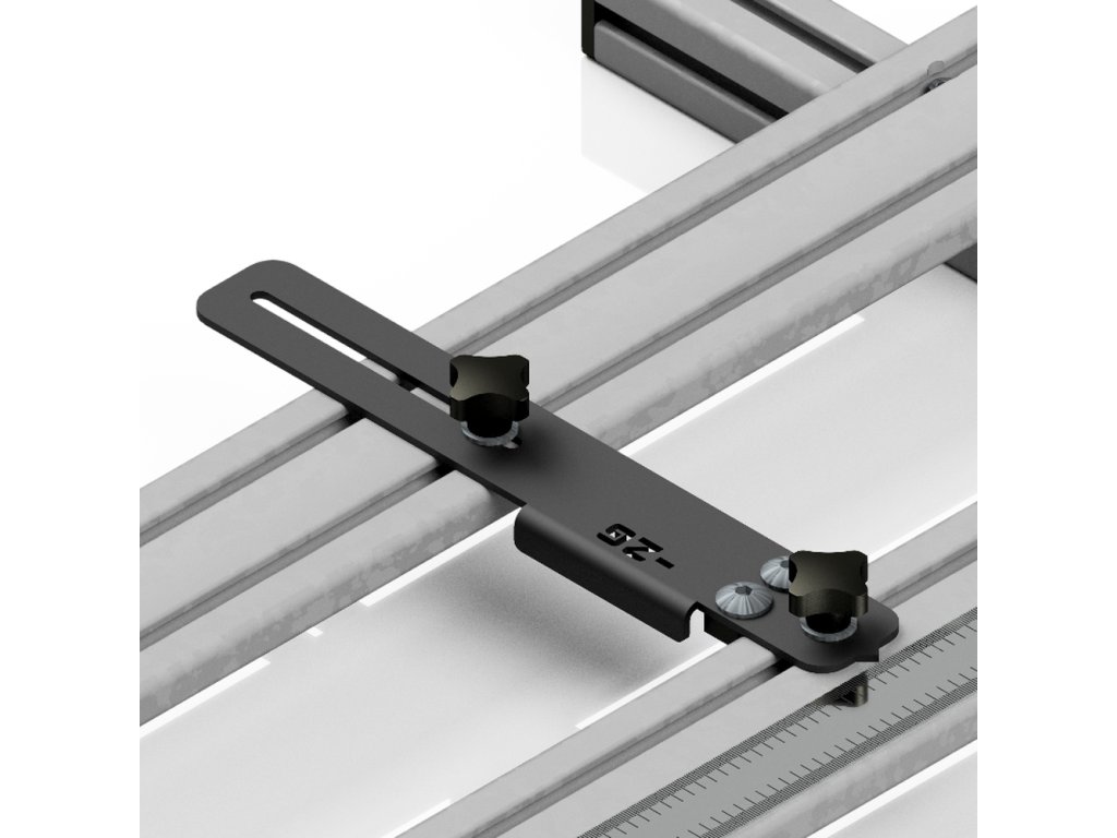 Chcete, aby všechny drážky jedné desky byly identické? Proveďte nastavení dorazových plechů a budou. Pro změnu pozice dorazového plechu nepotřebujete žádné nářadí. Stačí povolit šrouby s hvězdicovou hlavou, posunout doraz do požadované pozice a zpětně utáhnout. Vše je otázkou několika vteřin. Orientační vzdálenost dorazových plechů je možné odečítat z přiloženého pravítka.